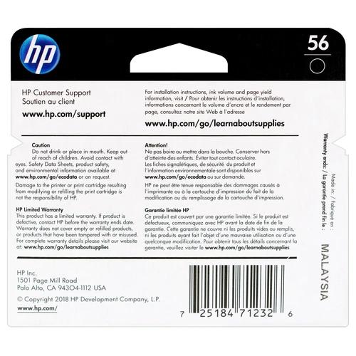 This Original HP 56 C6656AN Black Inkjet Cartridge is designed to work with HP Deskjet 450, 450c, 450CBi, 450Ci, 450wbt, 5145, 5150, 5150c, 5150v, 5150w, 5151, 5160, 5500, 5500v, 5500w, 5550, 5550c, 5550v, 5550w, 5551, 5552, 5650, 5650v, 5650w, 5652, 5655, 5850, 5850w, 9650, 9670, 9680, 9680gp Digital Copier Printer 410 Fax 1240 Officejet 4105, 4105z, 4110, 4110v, 4110xi, 4115, 4211, 4212, 4215, 4215v, 4215xi, 4219, 4251, 4252, 4255, 4259, 5505, 5508, 5510, 5510v, 5510xi, 5515, 5605, 5605z, 5607, 5608, 5609, 5610, 5610v, 5610xi, 5615, 6110, 6110v, 6110xi, J5508, J5520 Photosmart 7150, 7150v, 7150w, 7260, 7260v, 7260w, 7345, 7350, 7350v, 7350w, 7450, 7450v, 7450xi, 7459, 7550, 7550v, 7550w, 7655, 7660, 7660v, 7660w, 7660xi, 7755, 7760, 7760v, 7760w, 7762, 7960, 7960gp, 7960v, 7960w psc 1110, 1110v, 1110xi, 1200, 1205, 1209, 1210, 1210v, 1210xi, 1213, 1215, 1217, 1219, 1311, 1312, 1315, 1315s, 1315v, 1315xi, 1317, 1318, 1340, 1345, 1350, 1350v, 1350xi, 1355, 2105, 2108, 2110, 2110v, 2110xi, 2115, 2170, 2171, 2175, 2175v, 2175xi, 2179, 2210, 2210v, 2210xi, 2405, 2405 Photosmart, 2410, 2410 photosmart, 2410v Photosmart, 2410xi, 2410xi Photosmart, 2420, 2420 Photosmart, 2510, 2510 photosmart, 2510xi photosmart printer models. By using the Original/OEM HP 56 C6656AN Inkjet Cartridge you will always get clear, sharp text and graphics.