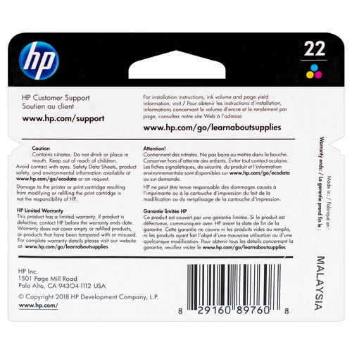 This Original HP 22 C9352AN Tri-Color Inkjet Cartridge is designed to work with HP Deskjet 3910, 3915, 3930, 3930v, 3940, 3940v, D1320, D1330, D1341, D1360, D1420, D1430, D1445, D1455, D1520, D1560, D2320, D2330, D2345, D2360, D2430, D2445, D2460, F2110, F2140, F2180, F2187, F2280, F335, F340, F350, F380, F4135, F4140, F4180 Fax 1250, 3180 Officejet 4315, 4315v, 5510, 5605, 5605z, 5610, 5610v, 5610xi, J3640, J3680 psc 1410, 1410v, 1410xi printer models. By using the Original/OEM HP 22 C9352AN Inkjet Cartridge you will always get clear, sharp text and graphics.