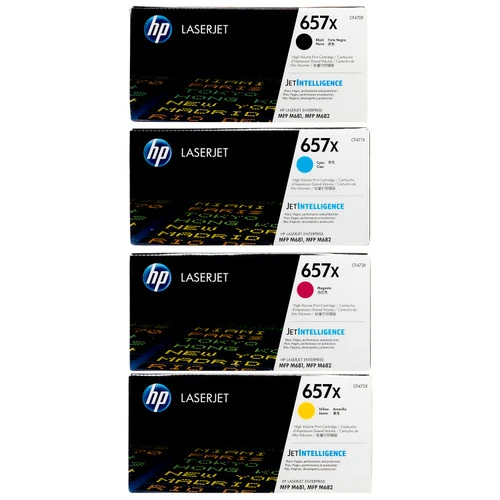 This is an Original HP 657X toner combo-pack. This set includes one Black, Cyan, Yellow and Magenta toner, and it is a collection of CF470X CF471X CF472X CF473X model numbers. HP designed these toners to work with their HP Color LaserJet Enterprise Flow MFP M681f; HP Color LaserJet Enterprise MFP M681f; HP Color LaserJet Enterprise Flow MFP M681z; HP Color LaserJet Enterprise Flow MFP M682z; HP Color LaserJet Enterprise MFP M681dh printers to produce the highest quality print available. In fact, you will be able to print up to 23,000 beautiful colored pages with this set. Compare that to other manufactures where the colors are not nearly as good.
